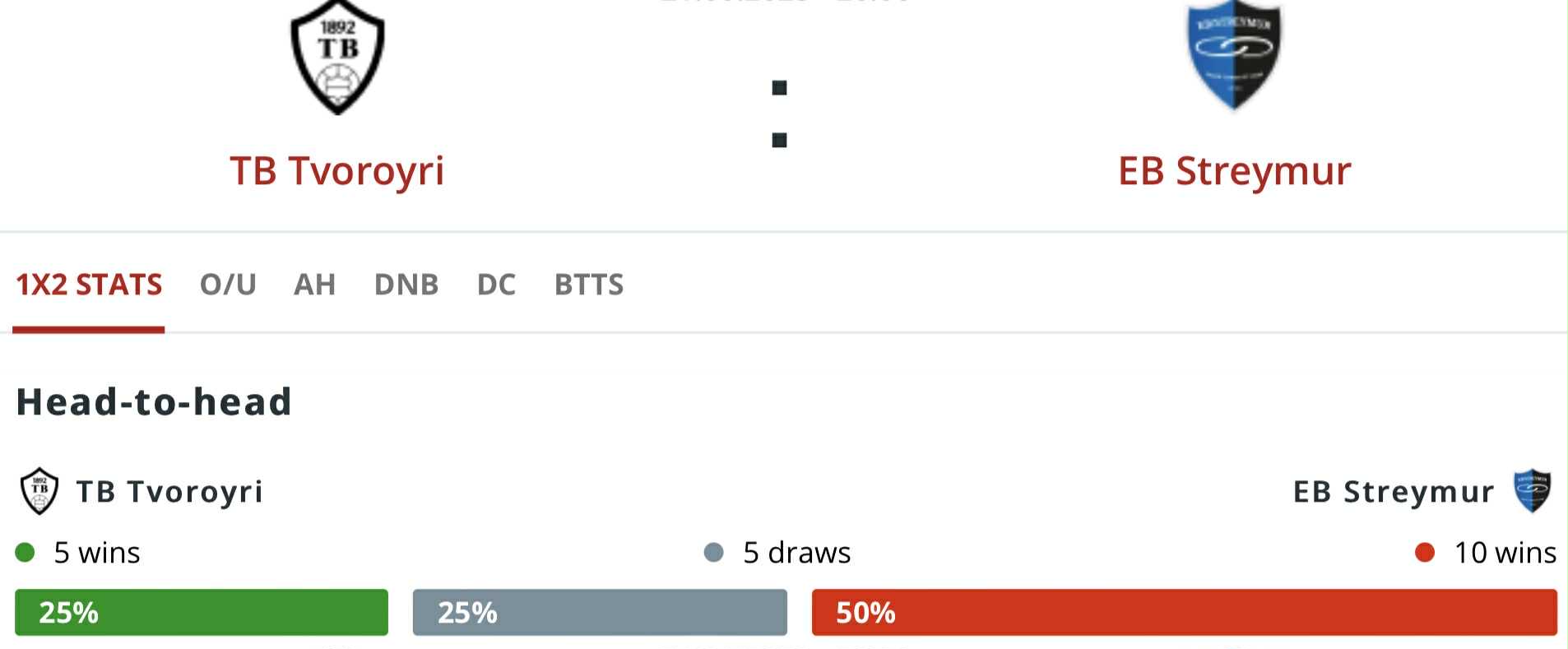 Oddsini upp á heimasigur til TB liggja millum 4,00 og 4,85.