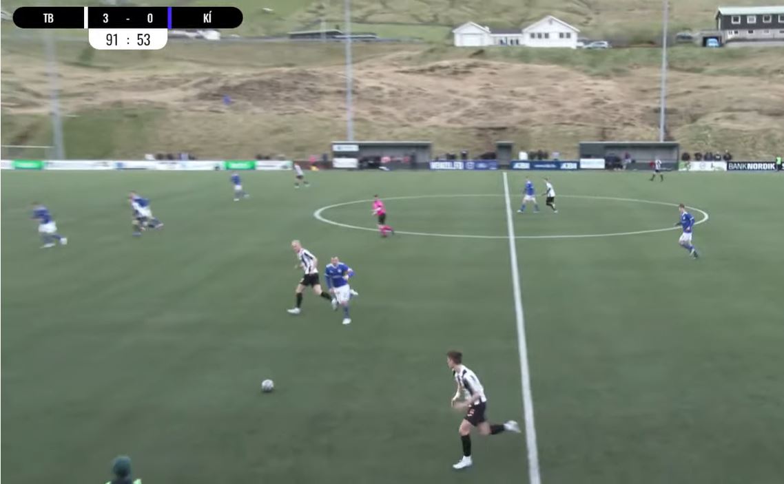 Nýggi skarprættarin hjá TB, Mikkel Blåholm, setti hol á miðskeiðis í seinna hálvleiki eftir framlegging frá Samudeen Musah, og sjey minuttir seinni var tað innskifti Jóhan Renéson Thomsen, sum økti um munin til 2-0. Tá var tað, eftir at Mikkel Blåholm legði flatt innfyri úr vinstru, og innskifti maðurin við handara stólpa stýrdi bóltin í málið.