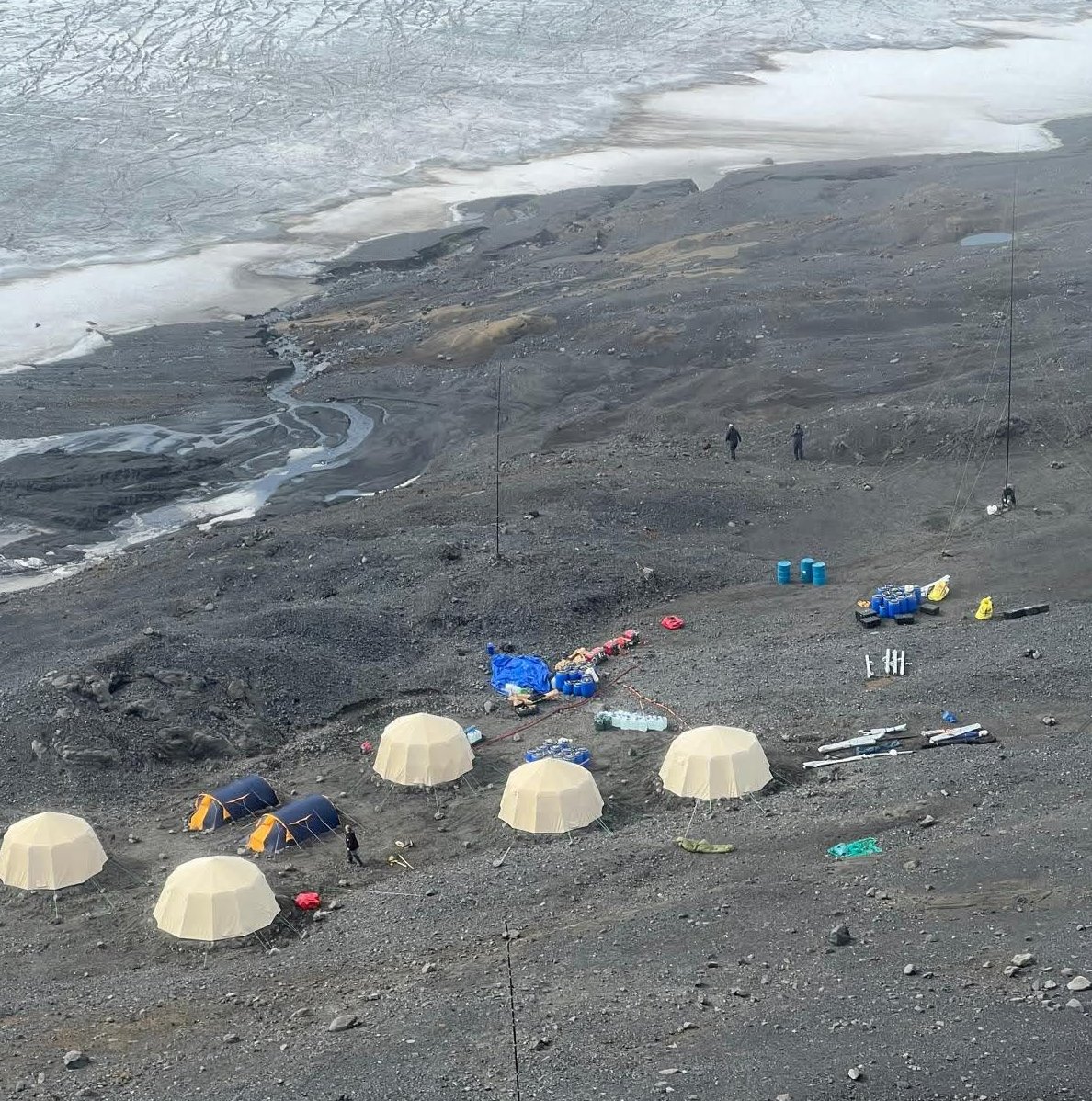 - Síðan mátti bíðast eftir betri veðri, og at tyrlan kom við meira fólki. Nú vóru teir 10 mans. Hetta gjørdi tað lættari at fáa sett tjøldini upp. Teir fingu trý stór og tvey minni tjøld upp. Seinni komu so fýra mans afturat, so nú var hópurin komin upp á 14.