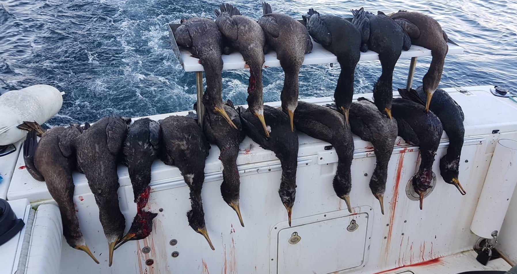 Kenneth Bernhard Olsen sigur í gjár frá einum túri saman við Finn Ludvig, har teir vóru og skutu skarv. Túrurin gav tilsamans 20 skarvar, soleiðis sum ovara myndin vísir.