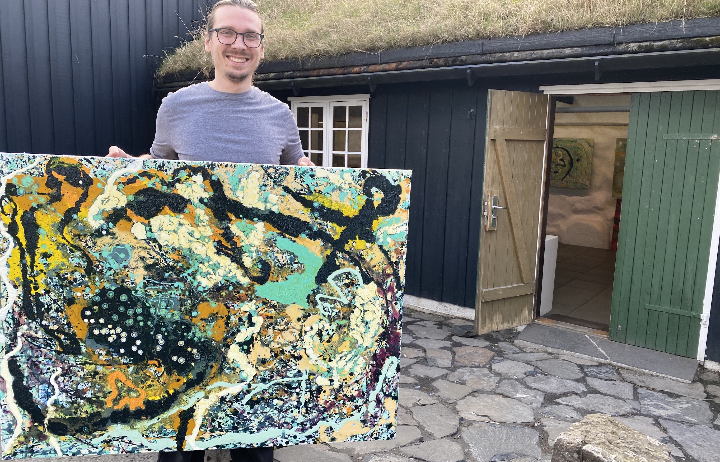 – Eg elski at mála, og eg vóni, at kunna brúka nógva tíð at mála í framtíðini, sigur Teitur, tá vit hitta hann í Smiðjuni í Lítluvík skírisdag, tá hann er í ferð við at seta framsýningina, sum letur upp í dag, upp.