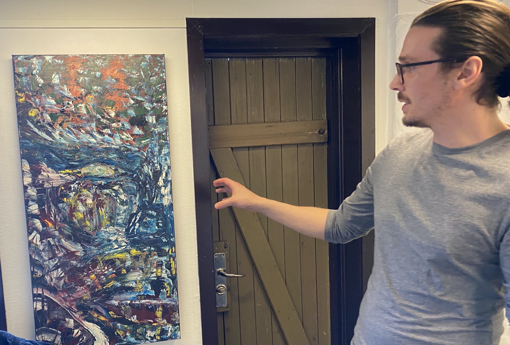 Síðani vísir hann okkum málningin, hann kallar »Býttur«, har hann fer aftur í huldusøgur um trøll, sum býta um børn. Og ein triðja kallar hann »Kolanám«, har tú í myndini hómar ein mann í hjálmi við pannulykt og í myrkinum í náminum kanst hóma ymisk skríggjandi andlit, sum skapa óhugna.