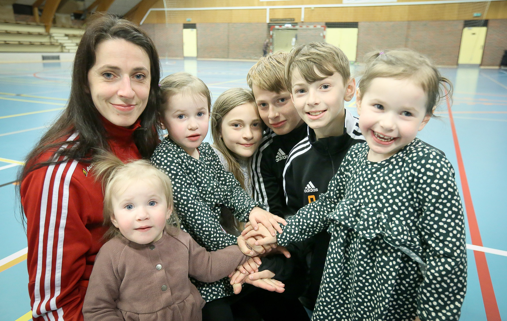 Poula og maðurin Arnhold eiga seks børn í aldrinum 1 til 13 ár, men tað ber til at spæla hondbólt kortini.