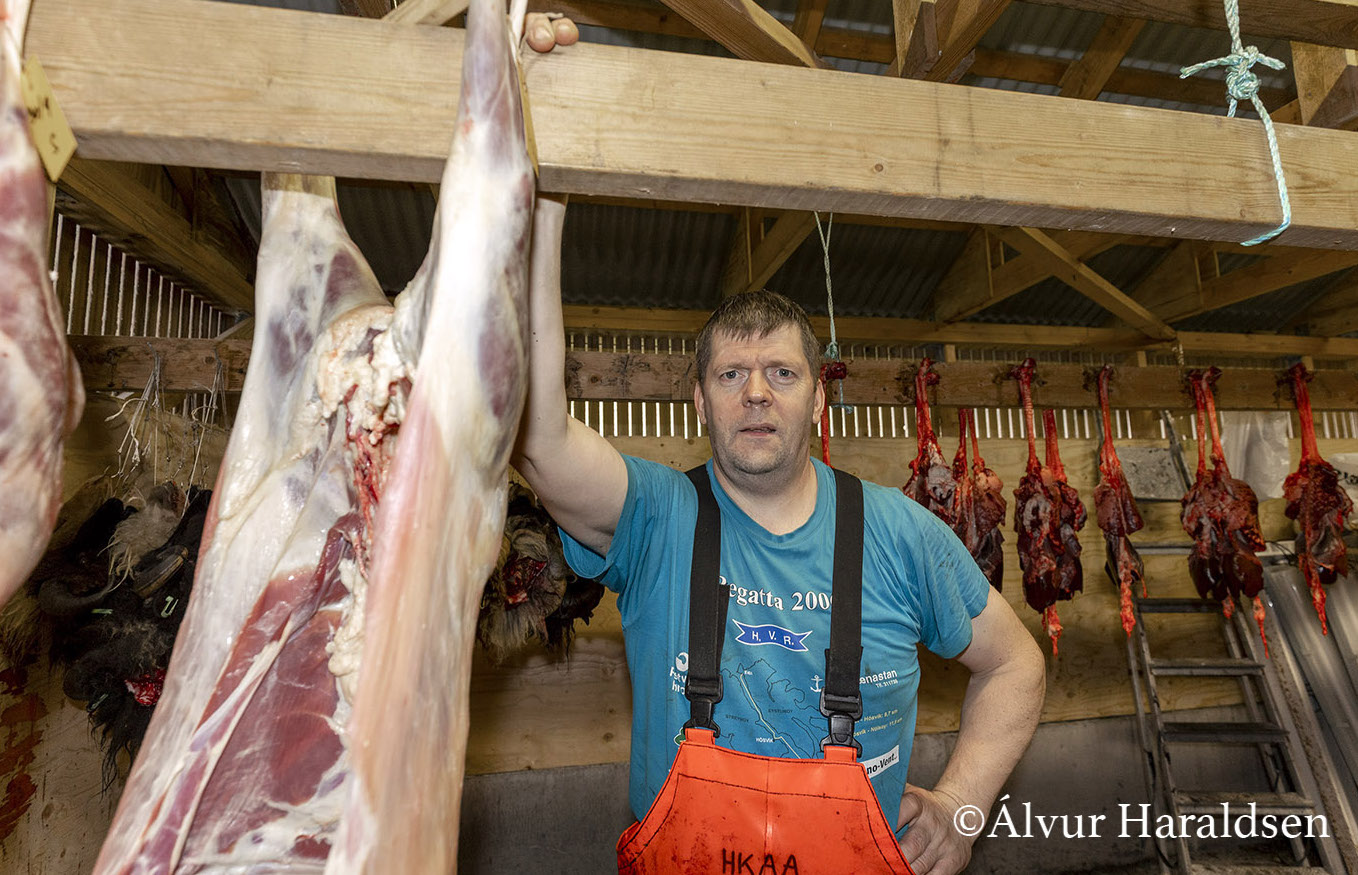 - Áhugin fyri seyðinum er stórur, og var hann ikki tað, hevði hetta slett ikki borið til, tí arbeiðsdagarnir eru langir. Eftir arbeiðstíð á skúlanum eri eg hvønn dag í Oyndarfirði, har eg fóðri og geri ymiskt fyrifallandi, og eg eri sjáldan aftur við hús fyrr enn klokkan 21-21.30 um kvøldið, sigur Hans Kristian Abrahamsen, sum eigur meira enn helmingin av seyðinum í Oyndarfirði