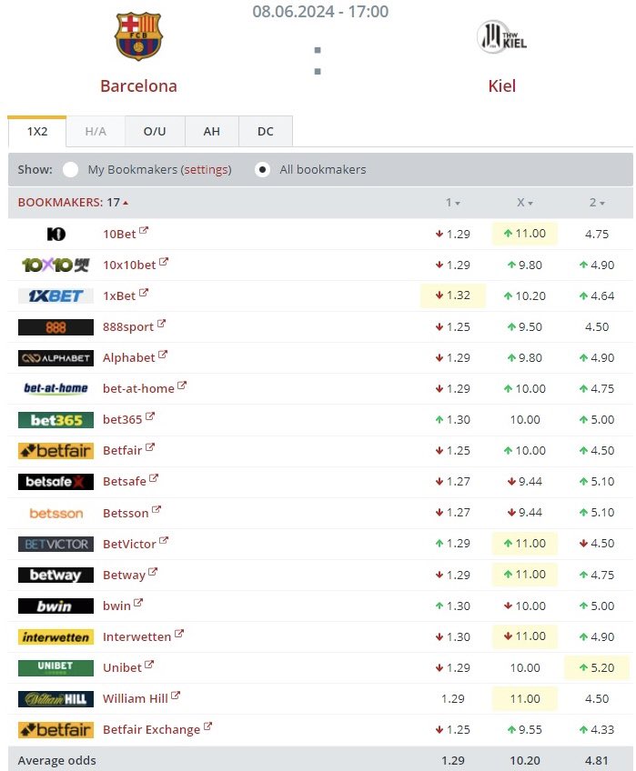 Barcelona er eisini greiður favorittur hjá veddingarfyritøkunum at vinna á Kiel, og liðið hjá Eliasi er greiður "underdog" í hálvfinaluni.
