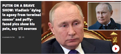 Daily Star heldur, at heilsustøðan hjá russiska forsetanum kann hava gjørt hann meira áleypandi. Keldur siga, at forsetin nú fremur álopið á Ukraina, tí hann ynskir at hava eitt eftirmæli.
