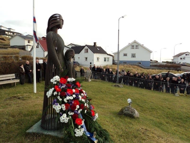 Síðan verður farið niðan til minnisvarðan, har kransar verða lagdir
