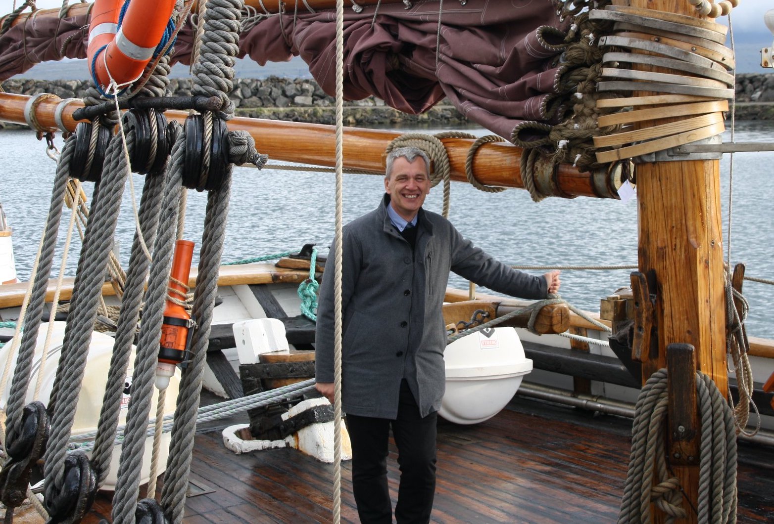 - Vit kunnu staðfesta, at byrjanin til okkara nútíðar fiskivinnusamfelag eru føroysku træseglskipini, segði borgarstjórin í Nes kommunu, tá hann heilsaði manningunum á føroysku træseglskipunum og gestunum hetta kvøldið, tá seglskipini byrjaðu sína flaggregatta á Toftum fríggjakvøldið.
