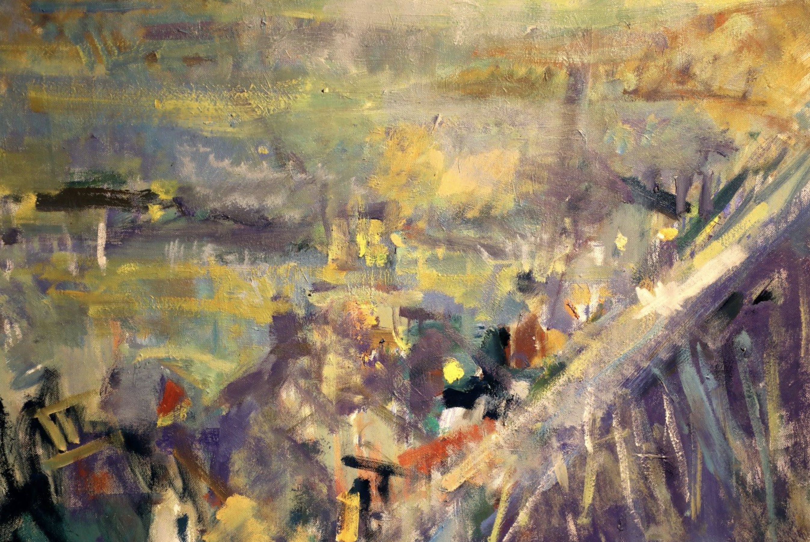 Sum flestu av tínum samtíðarmálarum, málar tú landsløg, tú dyrkar býarumhvørvið og býlingaøki - ørgrynni av litglaðum og fagurlittum húsum, gavlar og takflatur hittast í skørpum margvinklaðum hornum og kantum.