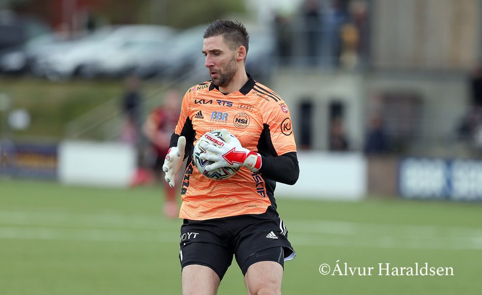 Føroyska spælið var langt frá tí, sum tað var fríggjakvøldið ímóti Íslandi, og átta minuttir seinni lá bólturin í føroyska málinum. Max Göppel rann frá føroysku verjuni og eitt vet úr vinstru setti hann bóltin framvið Teiti M. Gestsson, ið kendi seg noyddan at fara eitt sindur út úr málinum.