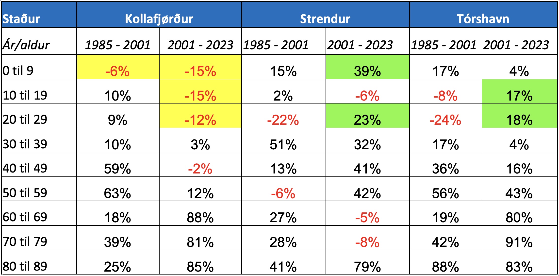 Børn og fólk í burðardyggum aldri eru vorðin burtur í einari av størstu bygdunum á Streymoynni, síðani Tórshavnar Kommuna yvirtók, meðan bygdirnar norðanfyri Eysturoyartunnilin, grannabygdirnar í Sundalagnum og vestanfyri eru vaksnar nógv somu árini.