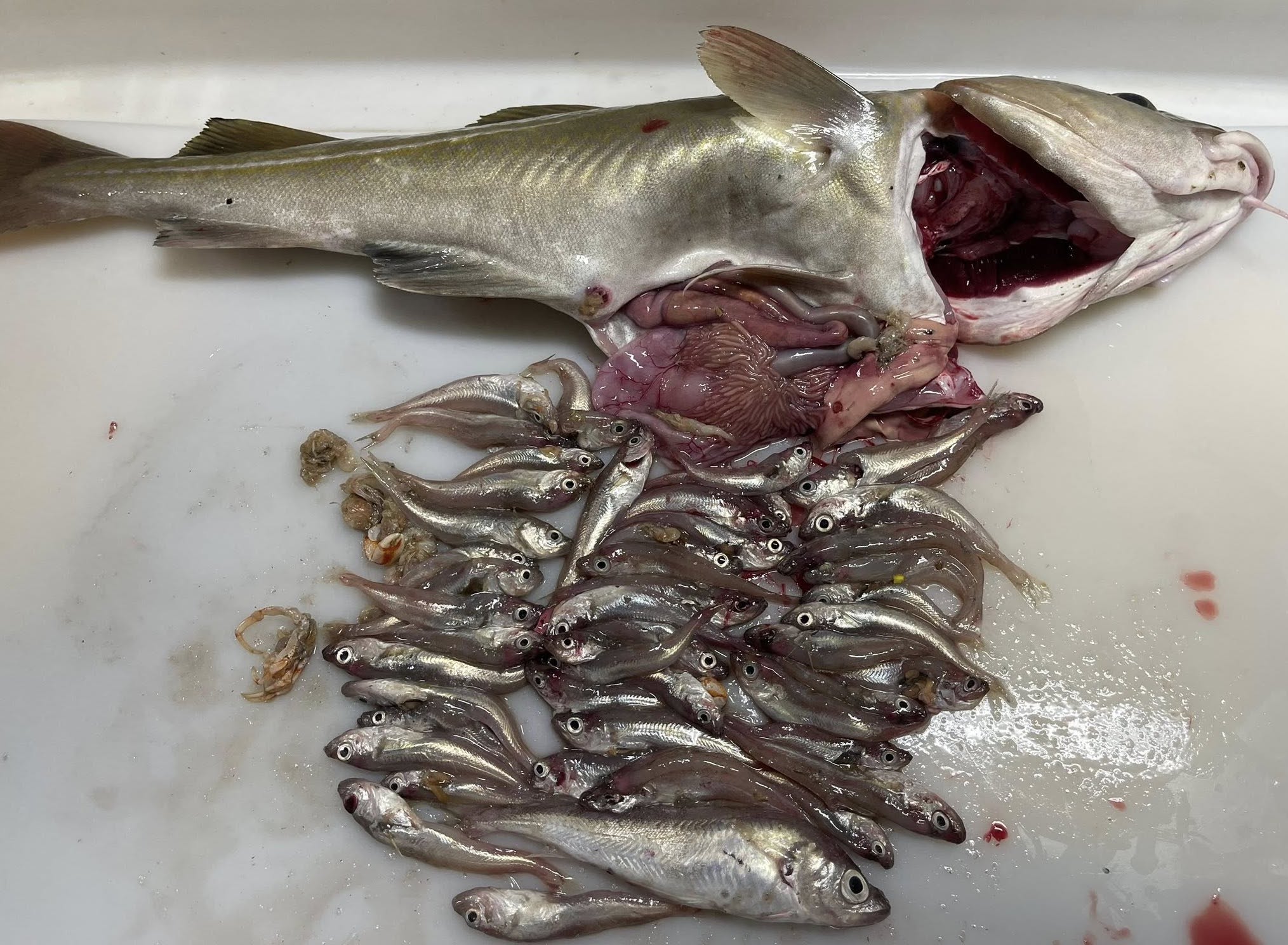 - Tað sær bara heilt gott út við toskinum og hýsuni. Her er nógv føði, og fiskurin er væl fyri. Flestu toskar hava fullan maga.