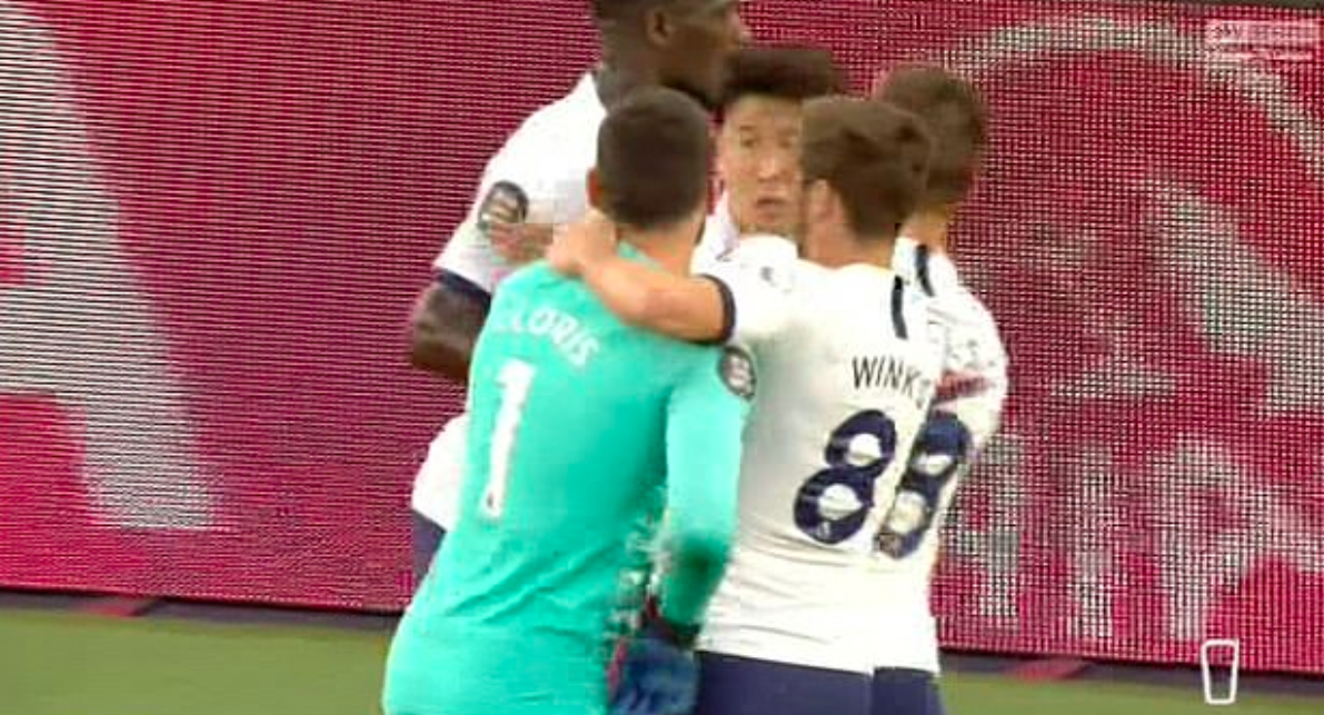 Mest umstrídda hendingin í dystinum var, tá dómarin bríkslaði til hálvleiks. Tá kom liðskiparin og málverjin hjá Tottenham, Hugo Lloris, rennandi í øðini eftir liðfelagnum Heung-Min Son. Teir endaðu í hornatøkum, áðrenn liðfelagarnir komu í millum.