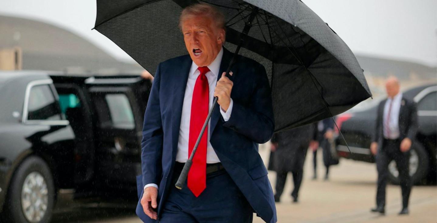 Amerikanski forsetin, Donald Trump, er á veg til Ísraels í kvøld. Her svarar hann spurningum frá tíðindafólkum, áðrenn hann fer umborð í forsetaflogfarið, Air Force One
