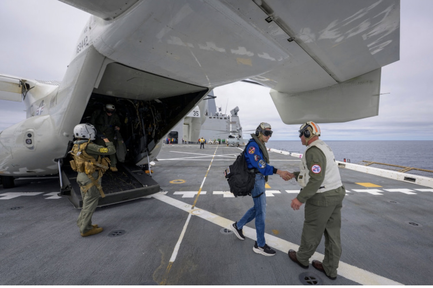 Ein mynd, sum NASA hevur givið út, vísir ovasta leiðaran í NASA, Jared Isaacman, sum er vitni til, at manningin á Artemis 2 og "Orion" eru komin fyri seg aftur.