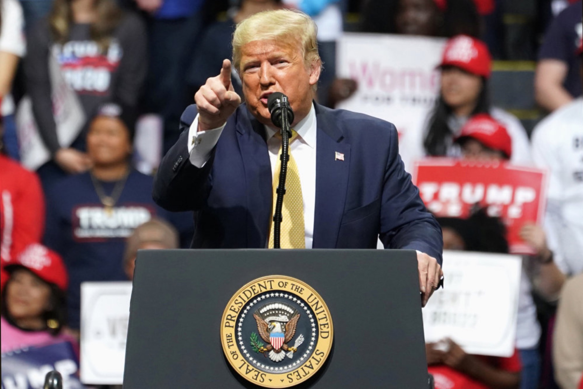 Donald Trump hevur síðani sigurin á forsetavalinum í 2016 ferðast kring USA við slagorðinum »America First«. Á veljarafundinum segði hann, at tað var upp á tíðina at finna gomlu klassikkararnar fram.