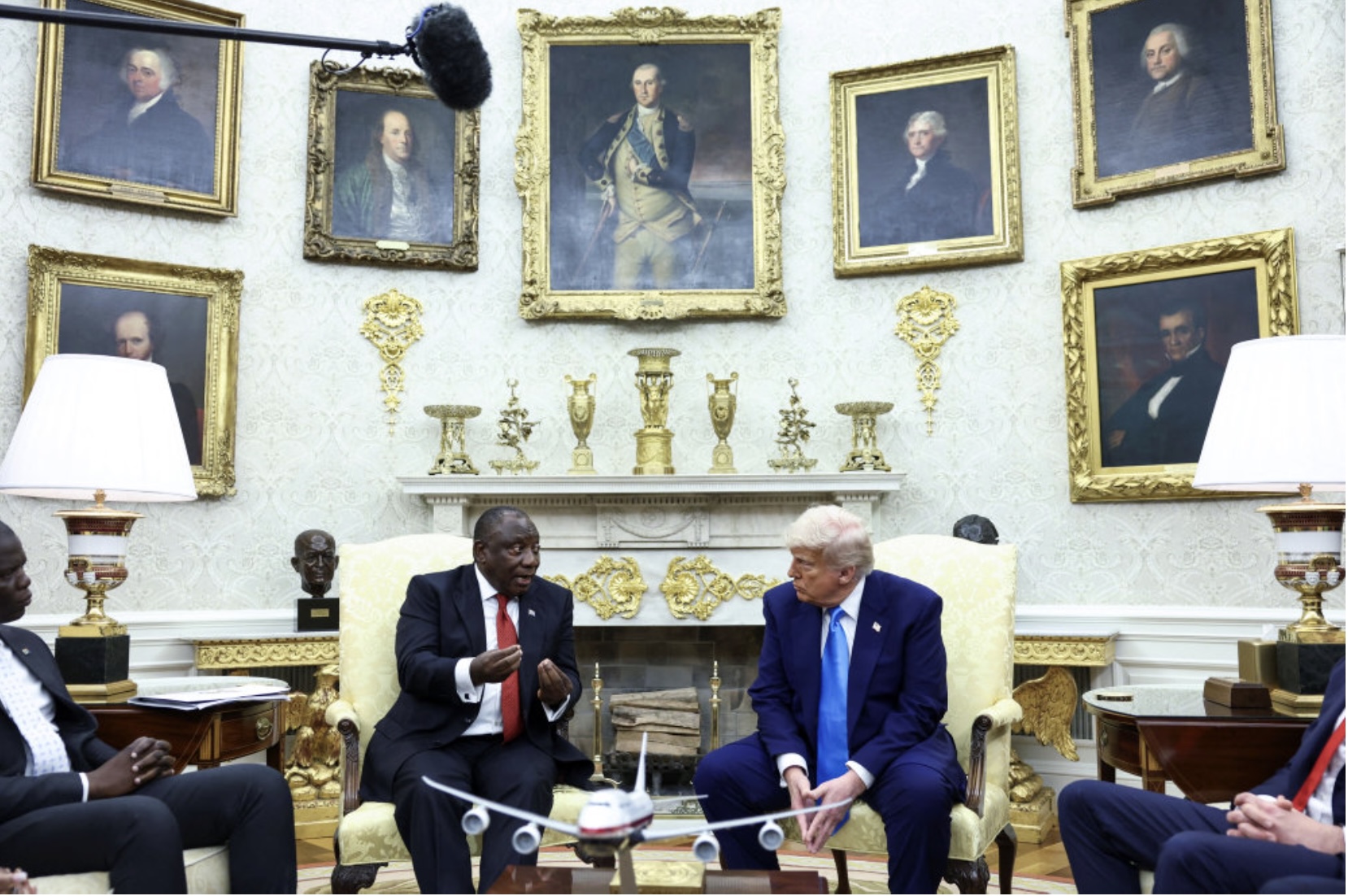 Fundurin millum teir báðar fer fram, eftir at Trump fleiri ferðir hevur ákært eina suðurafrikanska lóg fyri at frátaka hvítum bøndum teirra jørð í landinum.