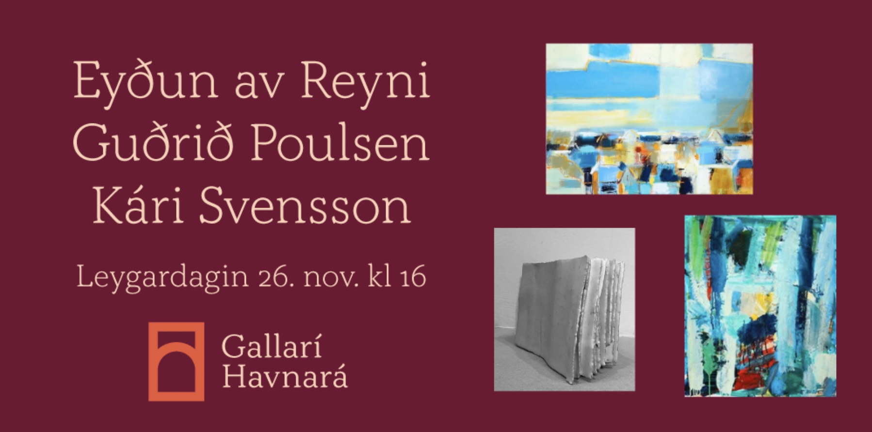 Gallarí Havnará bjóðar list av sera høgum støði, tá Guðrið Poulsen, Eyðun av Reyni og Kári Svensson bjóða til felags fernisering nú leygardagin kl. 16.