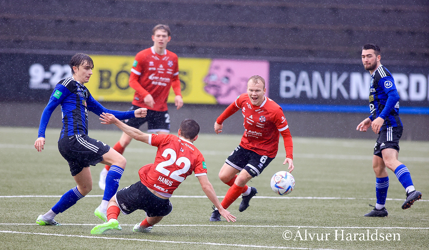 Tá ið klokkan var farin fimm minuttir út um vanligu leiktíðini var tað liðformaðurin og miðverjin hjá EB/Streymi Andras Ó. Olsen, sum sá gula kortið fyri aðru ferð og harvið eisini reyða kortið.