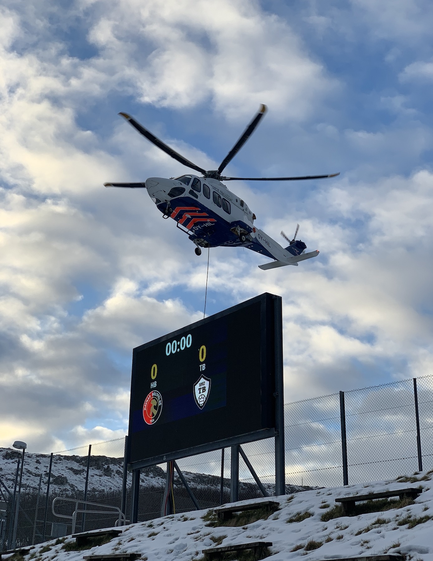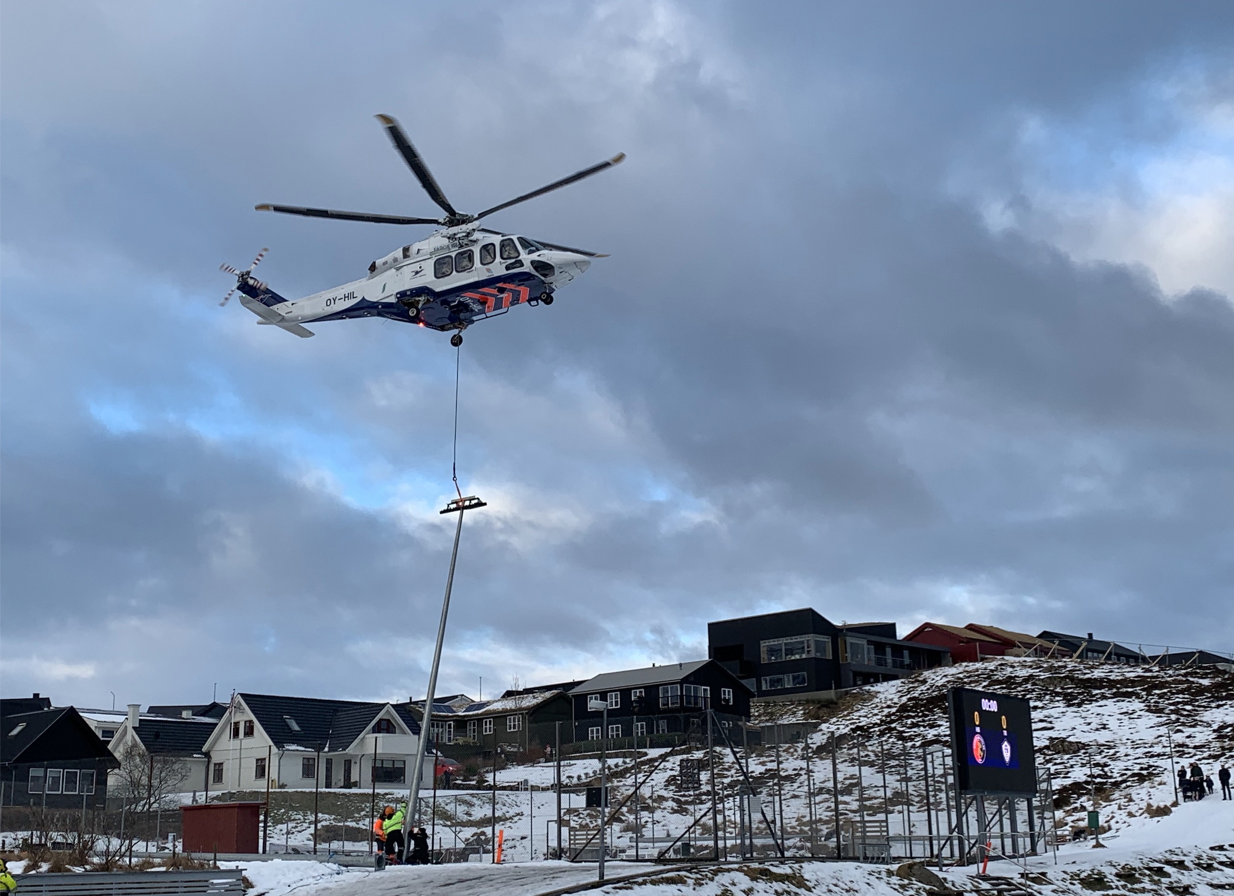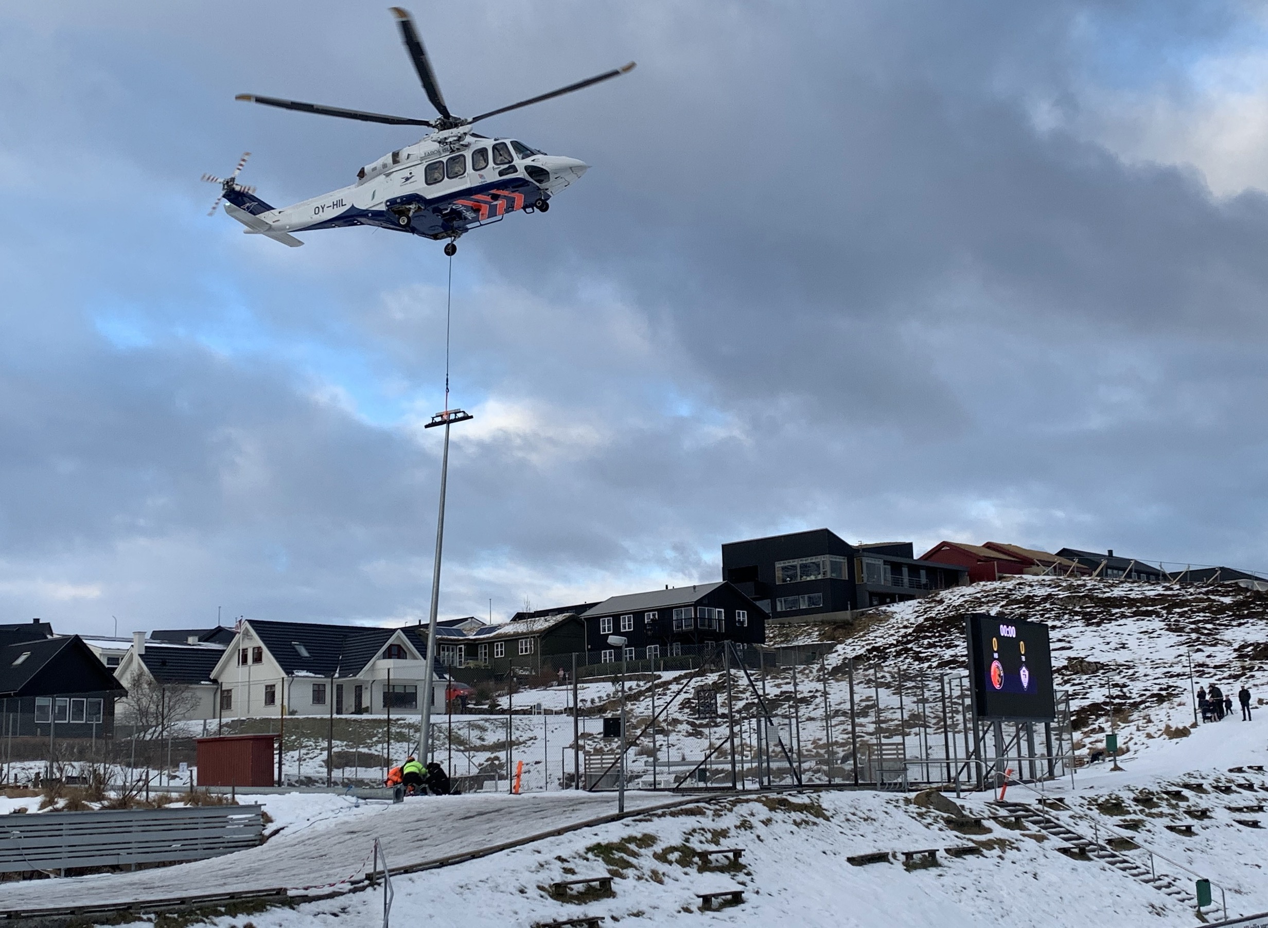 Men talan var ikki um spæl, tí tyrlan reisti ljósmastrarnar til tennisvøllin, sum er oman fyri ovara vøll í Gundadali. Tey, ið hoyrdu nógvan gang av tyrluni, sum næstan fleyg millum húsini í Gundadali, ógvaðust kanska um nógvan gangin.