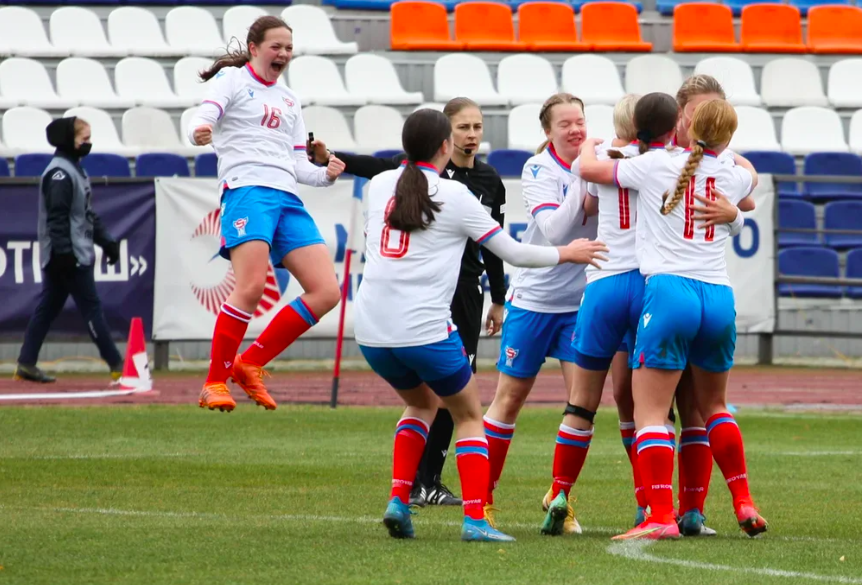 Frá fyrsta bríksli vístu føroysku genturnar seg frá síni bestu síðu, og tær vóru eisini leikliga omaná allan fyrra hálvleik, hóast tað ikki eydnaðist at fáa hol á málskjótingina. Beint fyri steðgin rendi føroyska liðið seg eisini í mótgongd, tá ið liðskiparin Sunniva Willemoes varrð rikin av vøllinum við reyðum korti fyri at nýta tiltiknu neyðbremsuna at steðga einum kypriotiskum skjótálopi.
