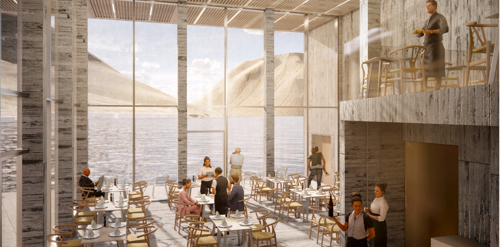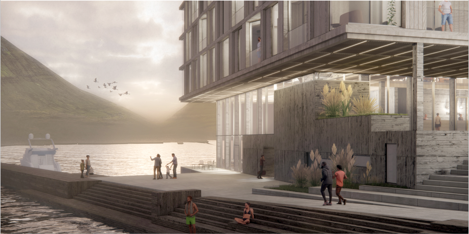 Tað eru Ósbjørn Jacobsen Arkitektar, sum hava teknað hotellið, sum verður staðsett beint norðan fyri Biskupstorg út móti Vágni við góðum útsýni í allar ættir. Høvuðsinngongdin verður suður móti Biskupstorgi. Nakað eystan fyri hotellið er nýggja kappróðrarneystið, og miðskeiðis millum neystið og hotellið verður fyribils parkering við inngongd til ráðstevnuhøll og vælveruøkið á hotellinum.