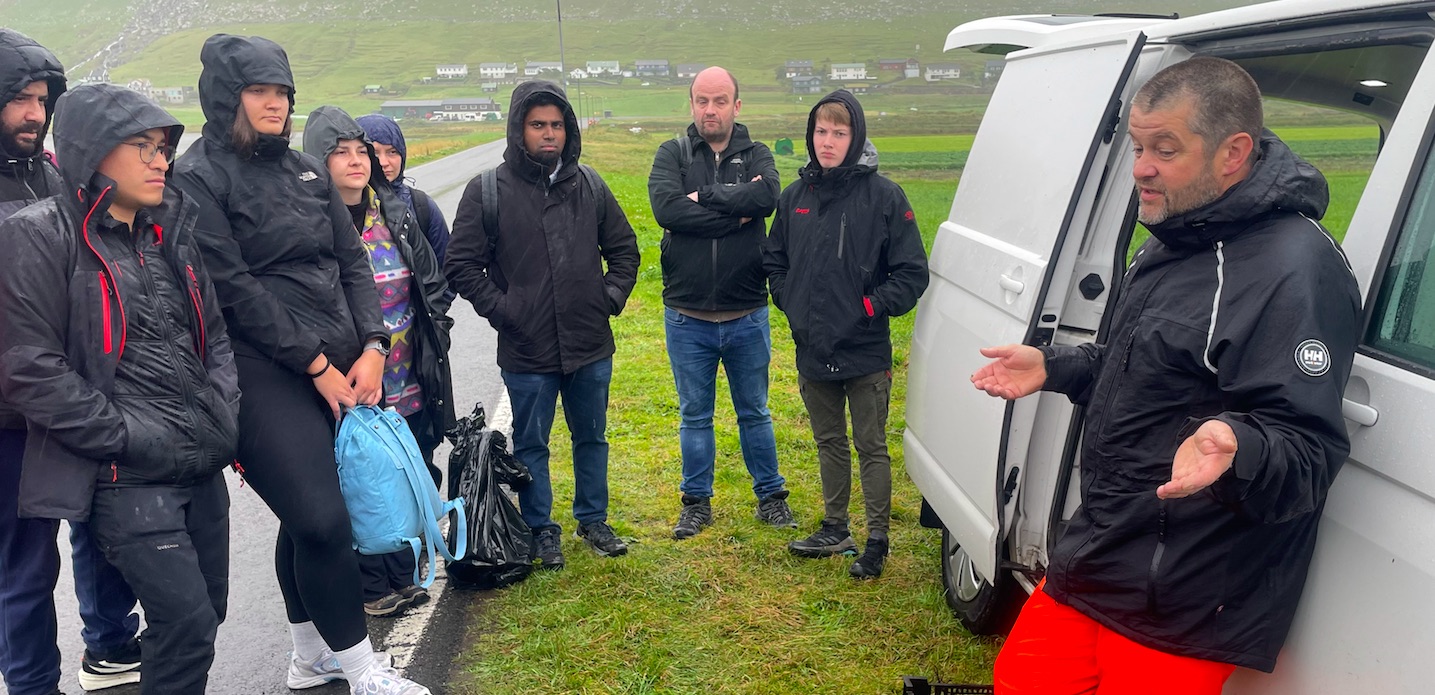 Síðan varð farið til Skúvoyar at vitja, og dagurin endaði við góðum døgurða á Mølini í Skálavík.