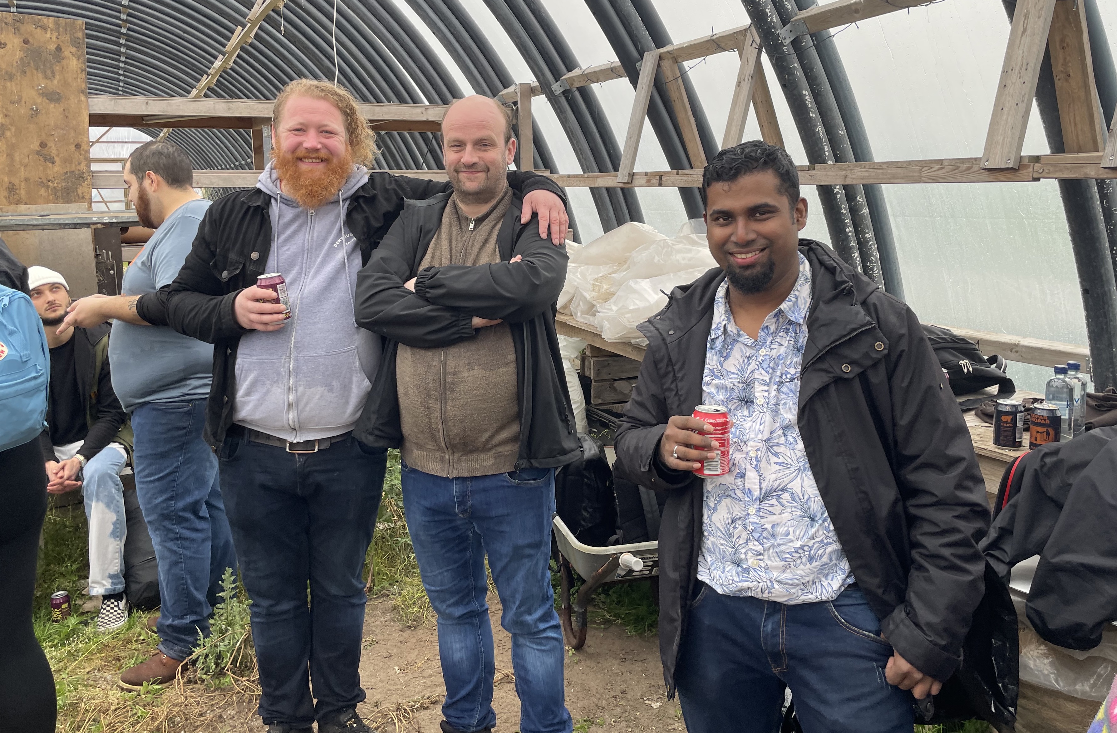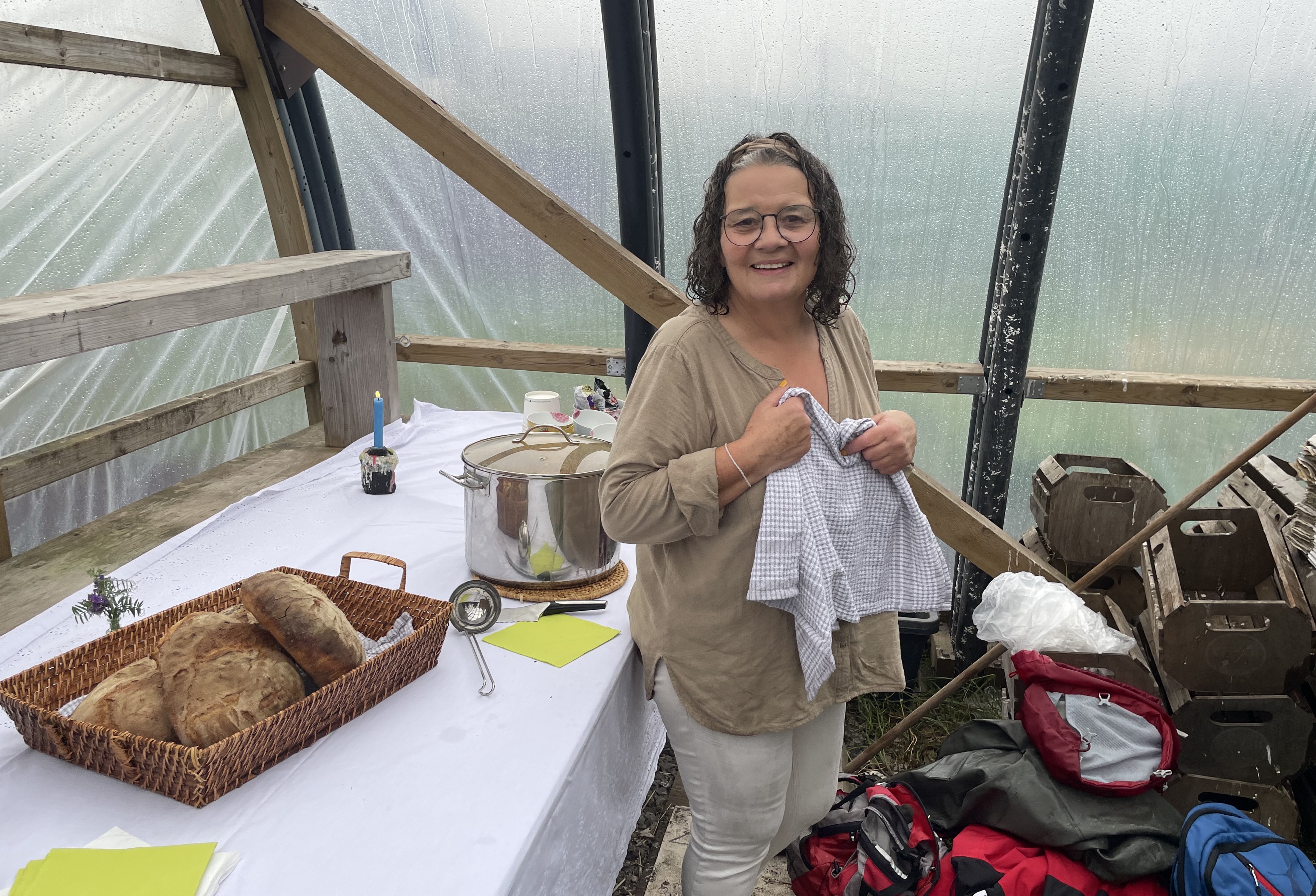Á middegi hevði Hanna A Reynatúgvu fína grønmetiskjøtsuppu til gestirnar í forvitnisligu vakstrarhøllini, sum nú aftur hevur fingið plast á.