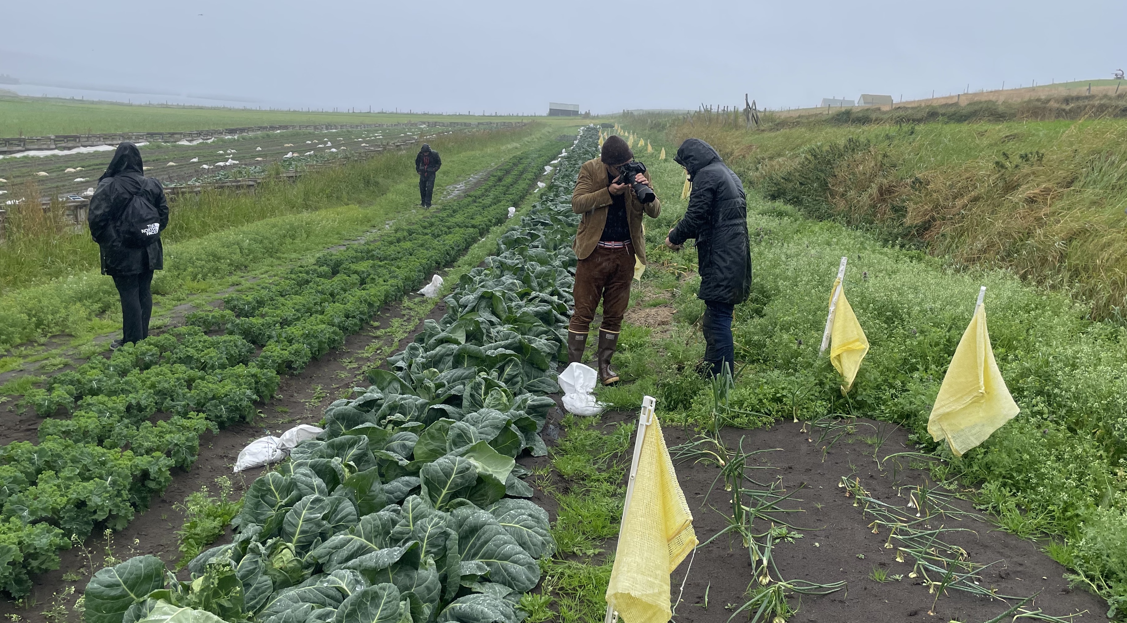 Í gjár fóru starvsfólk á matstovunum Heima I Havn suður til Sands at kunna seg um óføra grønmetið, sum skjótt kemur á marknaðin.