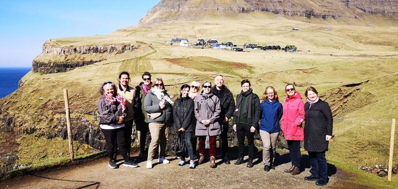At fundurin var í Føroyum var eftir ynski frá norðurlendsku samstarvsfelagunum, sum sóu Føroyar í brennandi sól. Sjálvur fundurin var hildin við Gjógv. Myndin er tikin í Gásadali við komu, skrivar gransking.fo.