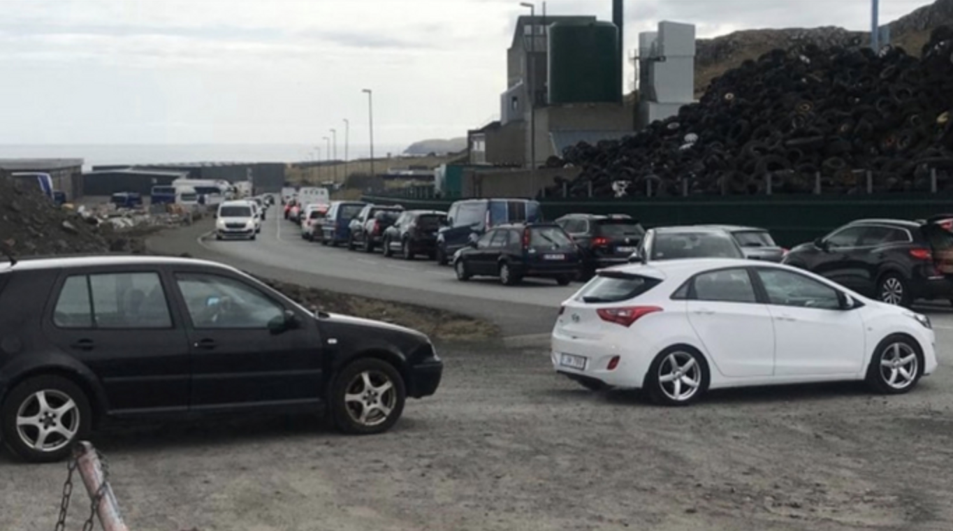 Leygardagin stóðu eitt skifti fleiri enn 70 bilar í bíðirøð fyri at sleppa inn á økið hjá Endurnýtsluni á Hjalla fyri at sleppa av við rusk.