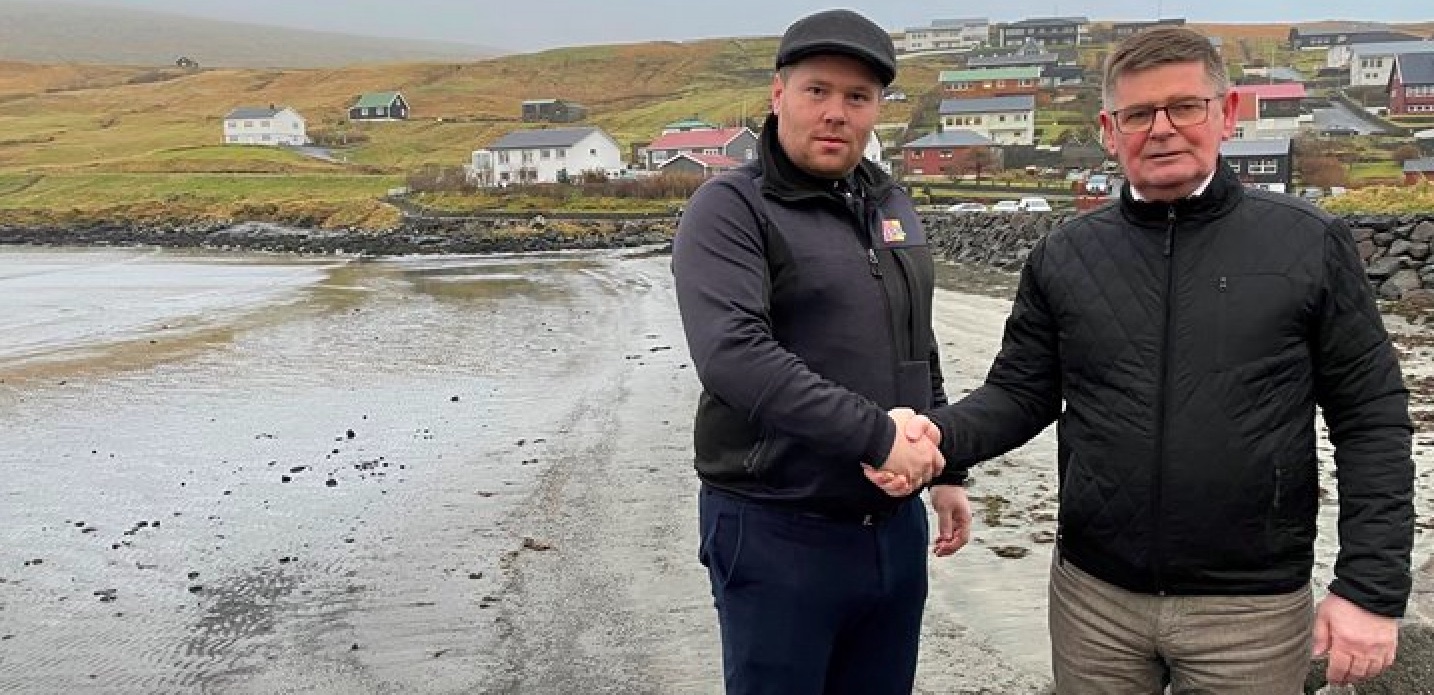 Fríggjadagin avhendaði J&K Petersen nýggju brimverjuna í Miðvági. Arbeiðið upp á brimverjuna byrjaði í fjør við tí endamáli at verja leiðingarnar, sum liggja í gøtuni fram við sandinum ímóti briminum.