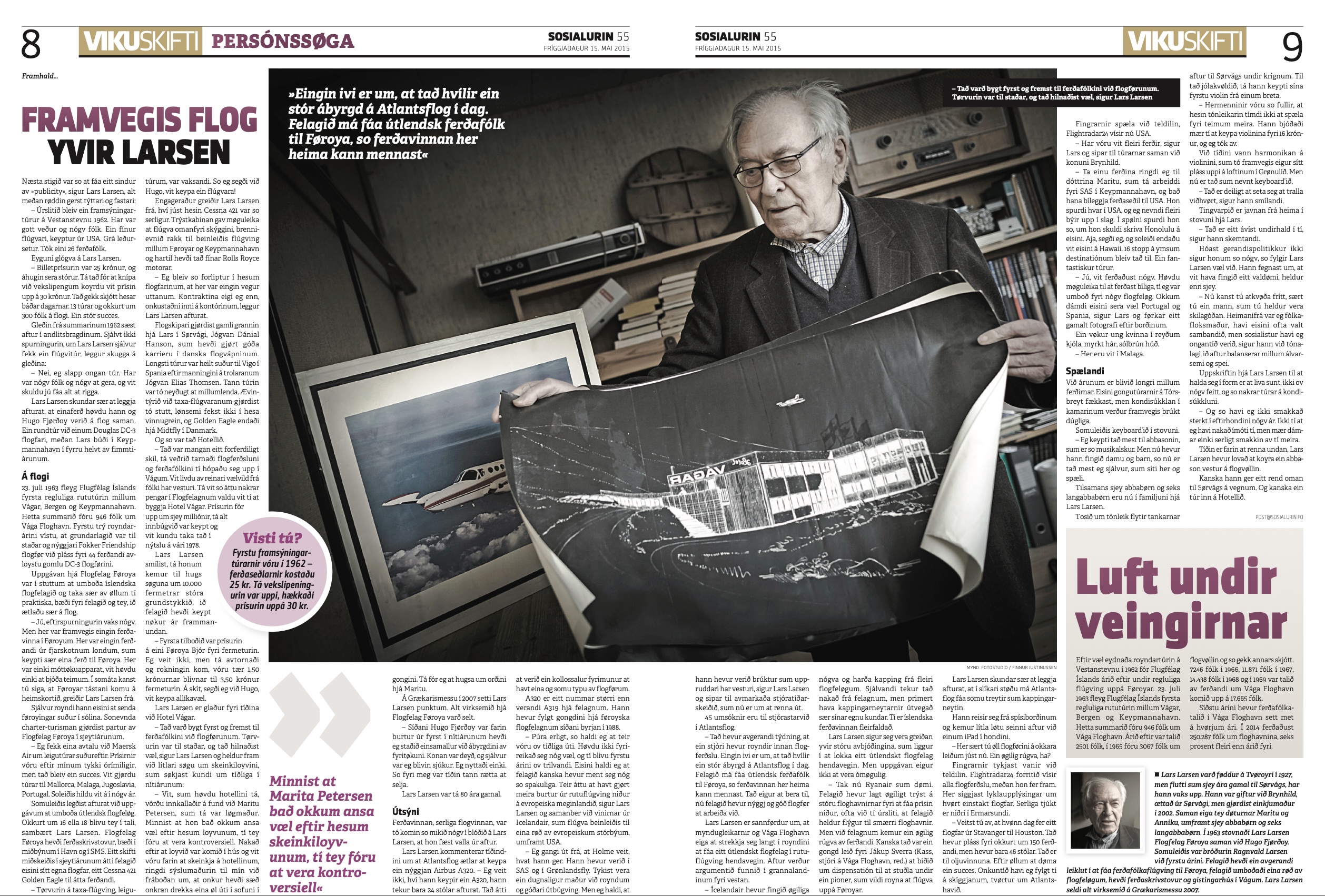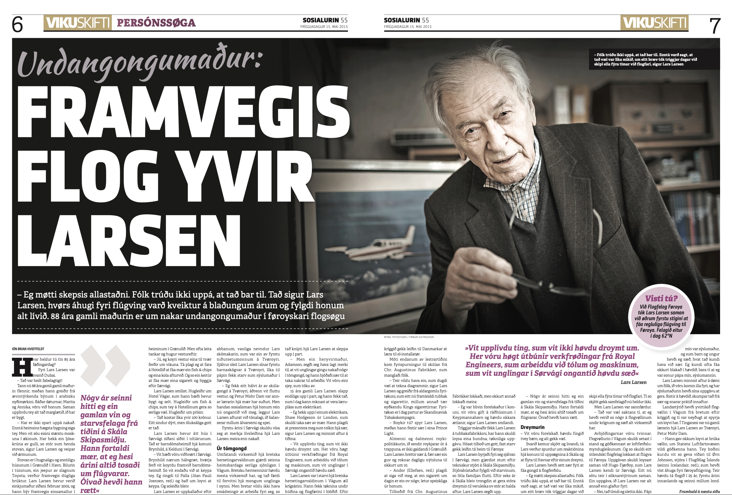 Hann greiddi frá, hvussu áhugin fyri flúgving varð kveiktur á blaðungum árum og fylgdi honum alt lívið. Lars Larsen var tá 88 ára gamal, sum um nakar var undangongumaður í flogvinnu í Føroyum.