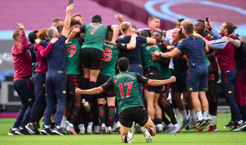 Í niðurflytingarstríðnum stóð Aston Villa eftir, meðan AFC Bournemouth og Watford fóru niður. Watford tapti 3-2 móti Arsenal og tí var javnleikurin hjá Aston Villa móti West Ham nokk til at yvirliva. AFC Bournemouth vann 3-1 á Everton, men tað er ikki nokk.