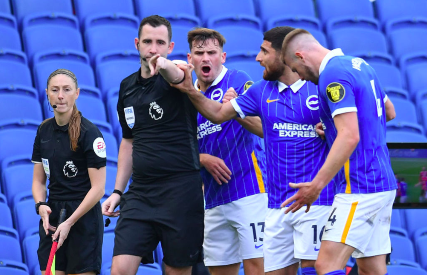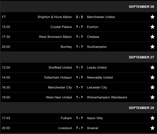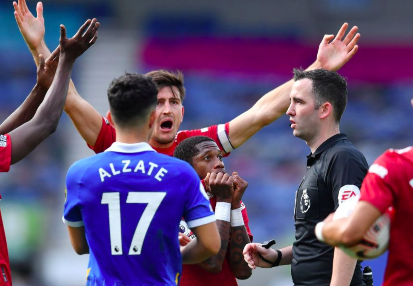 Fyrsti dysturin í 3. umfari í Premir League hevur verið í dag. Her var dramatikkur til seinasta bríksl millum Brighton og Manchester United – og so eitt sindur afturat. Tí Manchester United skoraði faktist avgerandi málið til 3-2, eftir at dómarin hevði brísklað fyri seinastu ferð.