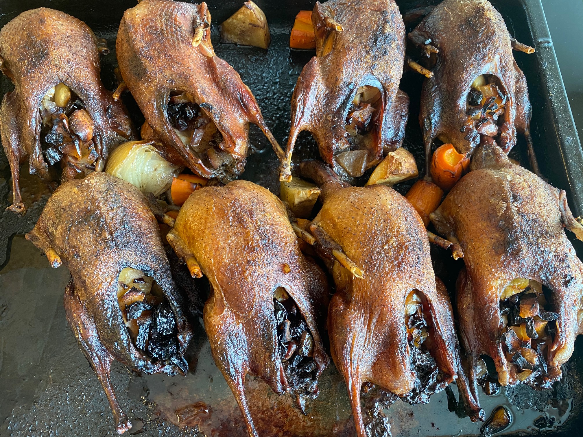 Sker súreplini, sviskurnar og leykin í puntar og fyll í havhestin