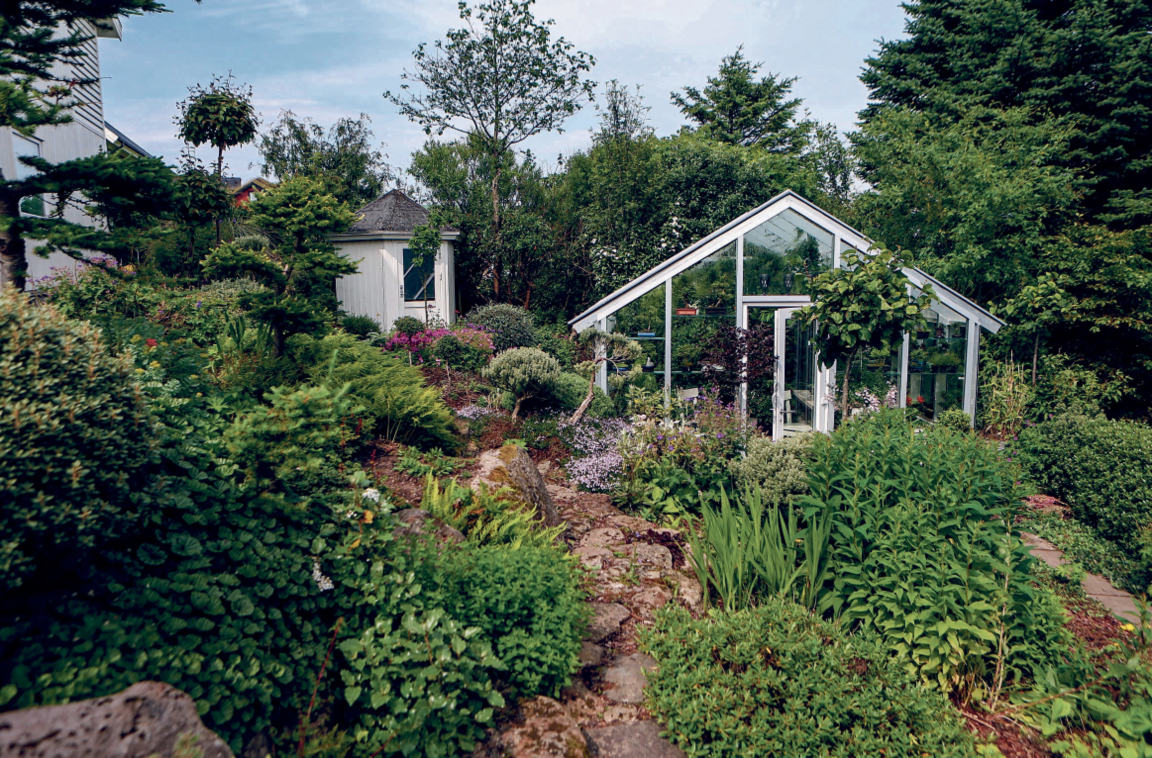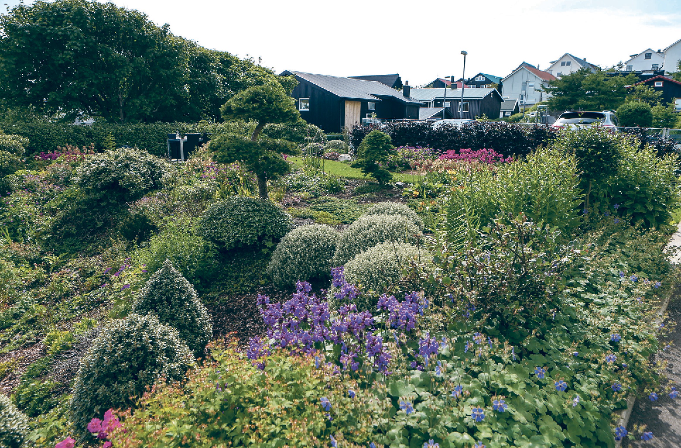 – Havin er livandi, og hann er ongantíð líka, og blómurnar koma upp í skotum. Fyrst eru tað tulipanurnar, og nú er tað primulurnar. Vit leggja ikki í stór trø, so vit hava bonsaitrø, sum er eitt lítið træ í eini skál, men tað sær út sum eitt stórt træ. Vit hava lagt okkum eftir at hava alt vetrargrønt, sigur hann.