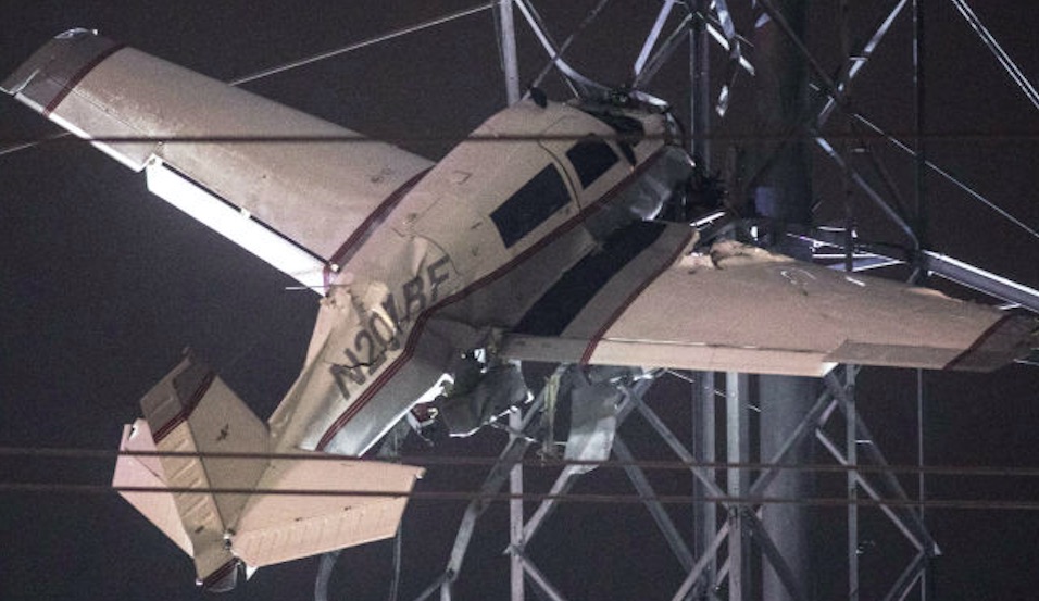 Í gjárkvøldið rendi eitt smáflogfar seg fast í eina háspenningarmastur í Maryland í USA.
