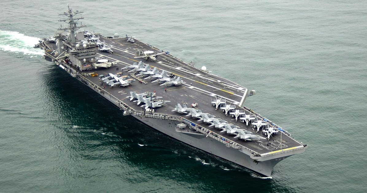Á myndini omanfyri sæst amerikanski flogberin, USS Nimitz.