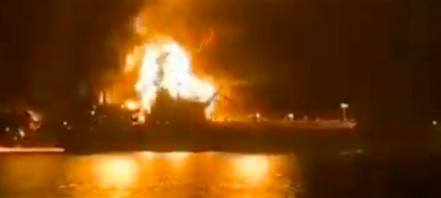 Sagt verður, at 25 av manningunum eru fluttir av skipunum, og sambært havnarmyndugleikunum í Irak brenna skipini framvegis.