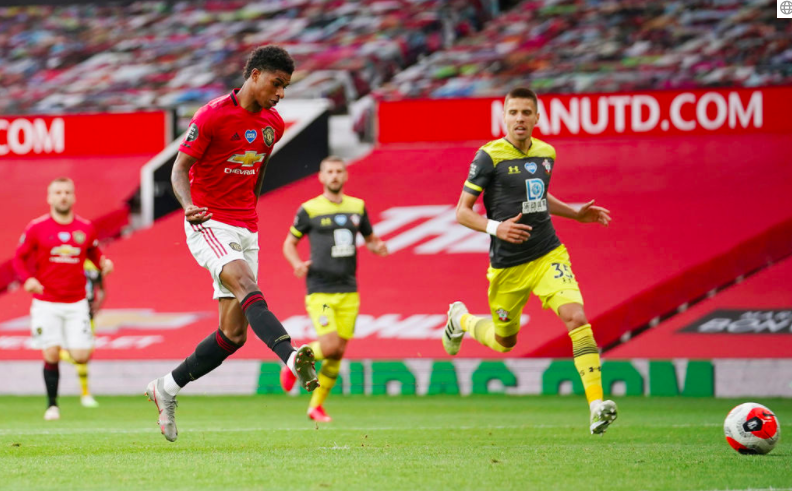 Manchester United hevur spælt avbera væl síðani koronasteðgin, og tí vóru heimamenninir stórfavorittar. Gestirnir komu á odda, men Anthony Martial og Marcus Rashford vendu dystinum, áðrenn Michael Obafemi í yvirtíðini javnaði eftir hornaspark. Manchester United er nú ájavnt Leicester í stigum, men Leicester hevur betri málúrtøku.