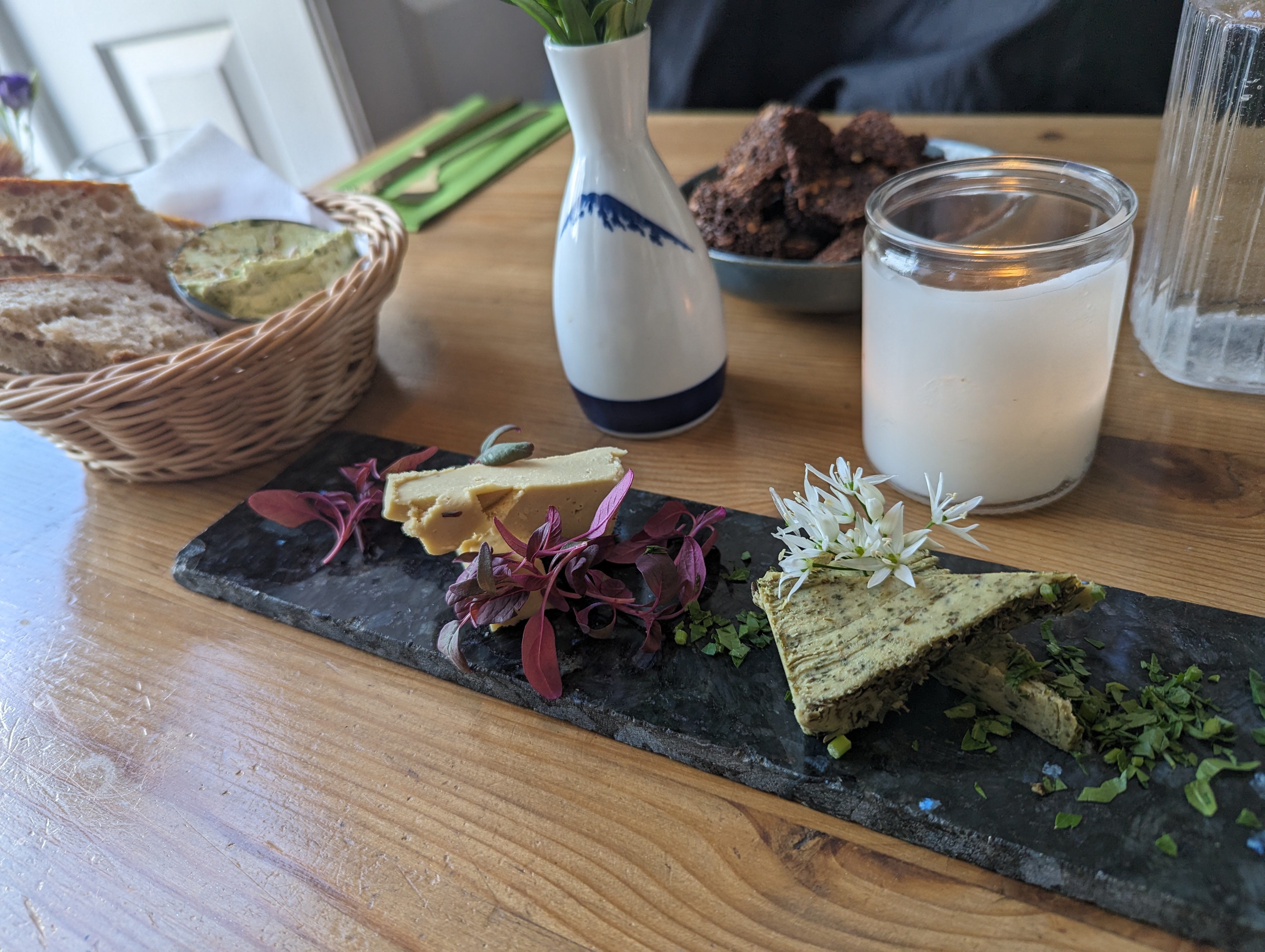 Fyrst fáa vit ein forrætt, og tað er breyð við sera vælsmakkandi osti og utrum, sum eru plukkaðar í donsku náttúruni, aftrat. Tað riggar heilt væl, og dressingurin/kremið til breyðið er eisini gott.