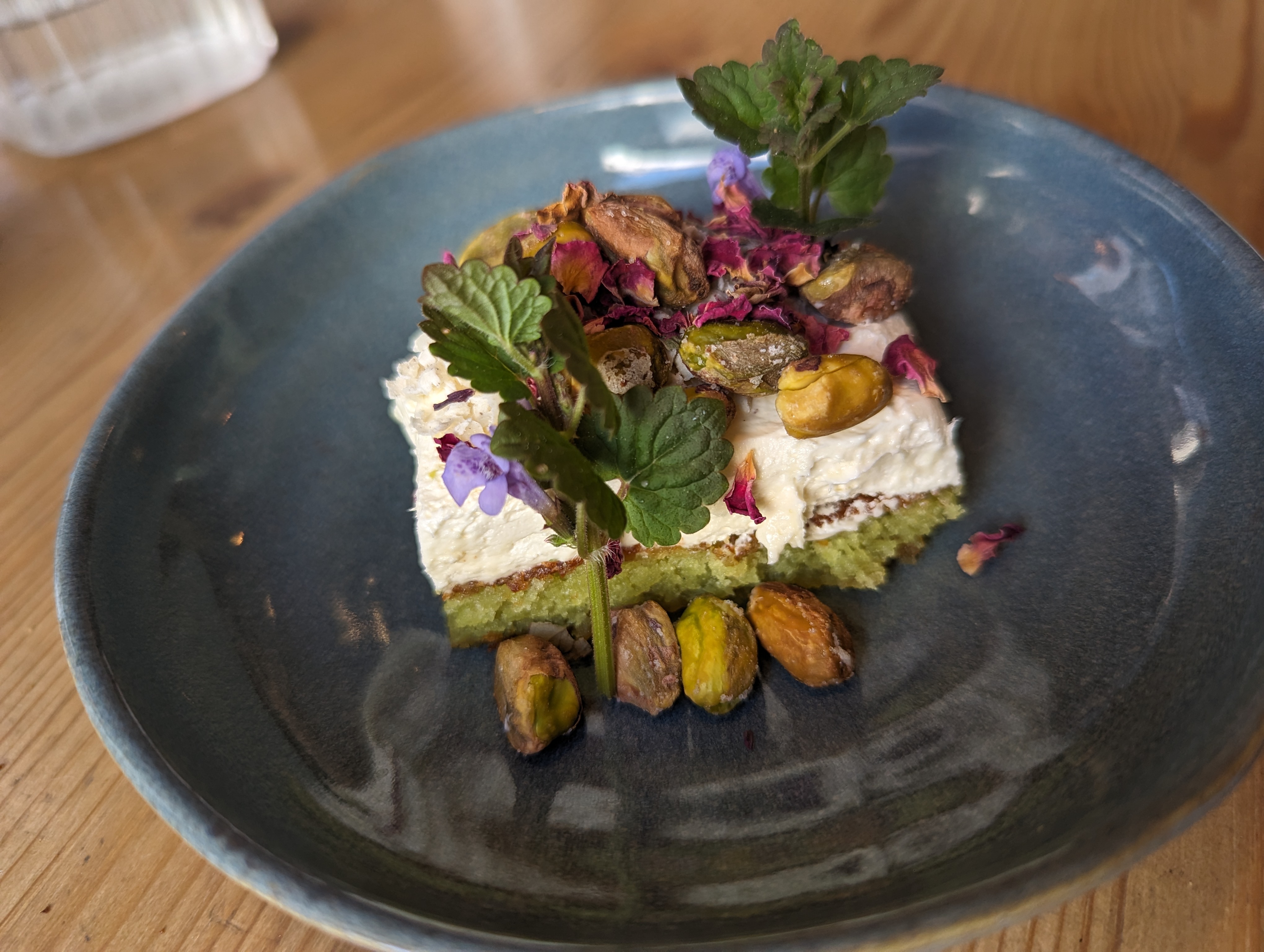 Omaná er ein kaka - hon er kanska tað, sum var minst spennandi við hesari matstovuupplivingini. Hon var fín, men ikki meira enn tað.
