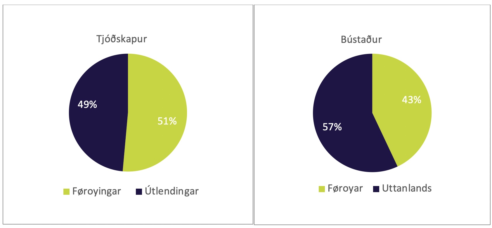Hetta merkir, at umleið 100.000 av teimum ferðandi eru føroyingar og hin helvtin, aðrar 100.000, tískil útlendingar. Tá eru sjálvandi allir útlendingar taldir við, eisini teir, sum koma til Føroya í arbeiðsørindum. Neyvar skrásetingar verða ikki gjørdar av hesum viðurskiftum, men sambært eini rættiliga eftirfarandi meting hevur talan verið um 30.000 til 35.000 av teimum ferðandi loftvegis, sum eru komin til landið í arbeiðsørindum. Her verður hugsað um til dømis handilsferðandi, handverkarar, tey, sum koma hendanveg at bora undirsjóvartunlar o.l. Hetta merkir, at fyri árini 2019, 2022 og 2023 var talan um millum 60.000 og 70.000 fólk, sum komu til Føroya loftvegis sum turistar.