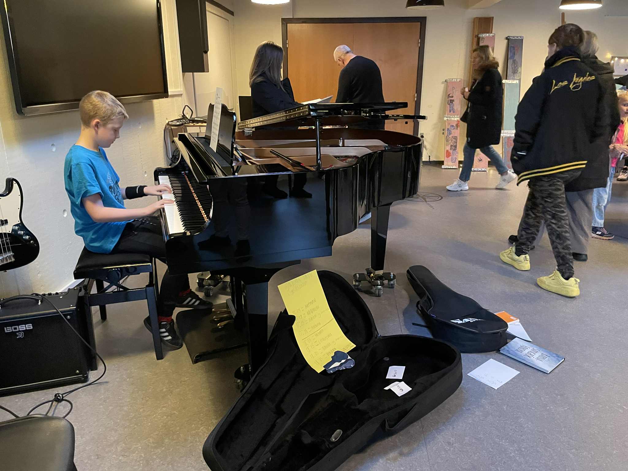 Í kvøld var opið hús fyri foreldrum og øðrum áhugaðum. Vitjandi kundu seta veruligan pening í bankan, og fáa skúlapening ístaðin, ið kundi nýtast í lítla samfelagnum.