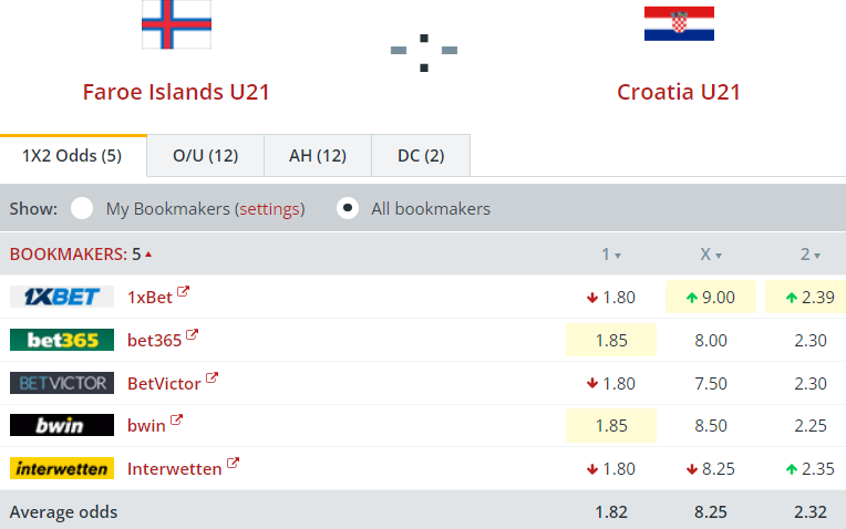 Fimm veddingarfyritøkur, ið lata odds upp á dystin hella til ein føroyskan sigur, men talan er ikki um nakra stóra favorittstøðu.