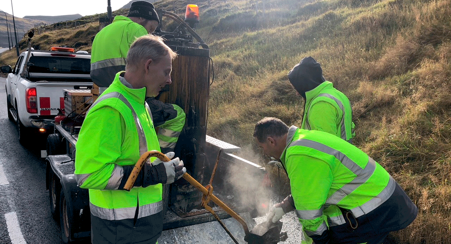 Landsverk er farið undir at strika vegirnar upp aftur, og Suðuroyggin og Vágarnar eru longu avgreiddar.