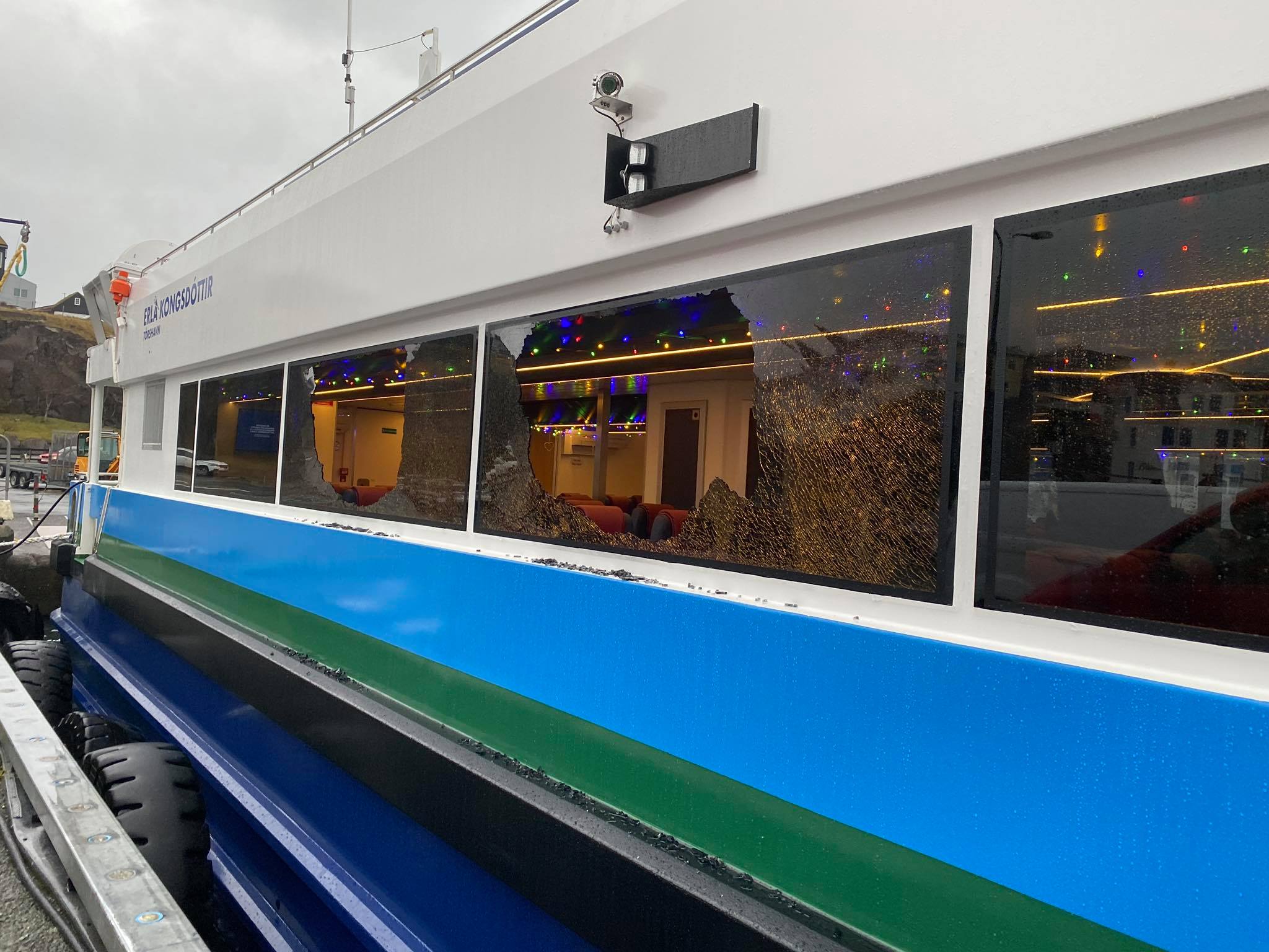 Tað var fyrrapartin fríggjadagin, at tveir rútar í stýriborðssíðu á Erlu Kongsdóttir brádliga fóru í knús, tá Erla Kongsdóttir var á veg inn á Havnina úr Nólsoy. Tað var eftir øllum at døma ikki ein sjógvur, ið knústi rútin, og ferðandi umborð á túrinum greiddi frá, at tað hoyrdist undarlig ljóð frá skipinum, áðrenn rútarnir fóru í knús.