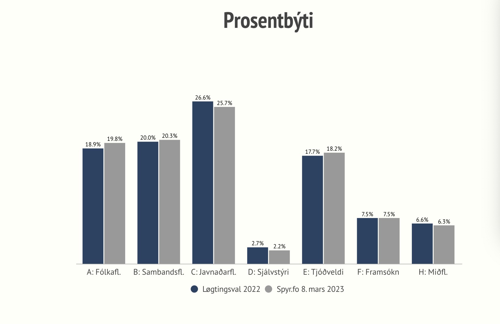 Fólkaflokkurin gongur fram frá 18,9 prosentum á valinum til 19,8.