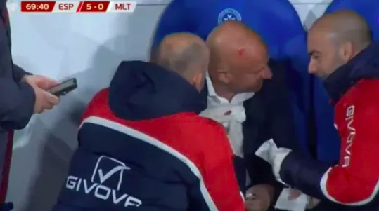 Venjarin hjá Malta, tann líviligi Ray Farrugia, fekk hol á høvdið, tá Malta fríggjadagin tapti 7-0 móti Spania. Miðskeiðis í seinna hálvleiki rendi hann høvdið á takið á bonkinum og fór at bløða. Berskølti venjarin fekk hjálp og eitt plástur á høvdið.
